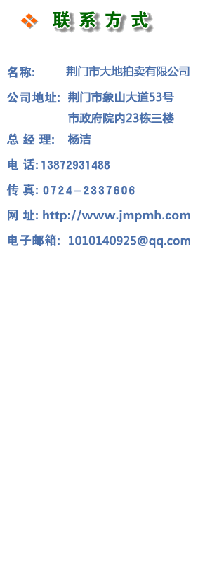 公司地址:湖北省荊門市象山大道53號市政府院內(nèi)23棟三樓 電話(傳真):0724-2337606 手機:13872931488